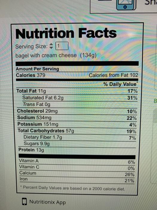 Protein in bagel with cream cheese. Report a problem with this food. Calories from Fat 701 181 Daily Value. Head to the diet generator and enter the number of calories you want.